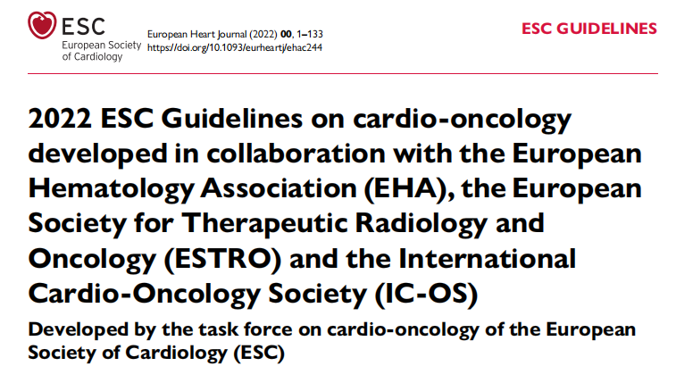 2022年8月26日欧洲心脏病学会年会(ESC 2022)在巴塞罗那完美开幕,北京时间8月26日下午《2022 ESC肿瘤心脏病指南》重磅发布。这是由欧洲血液病协会(EHA)、欧洲放疗与肿瘤协会(ESTRO)、国际肿瘤心脏病协会(IC-OS)联合发布肿瘤心脏病的首部指南。也是ESC的首部肿瘤心脏病学指南。