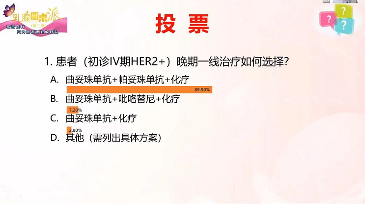 网上医生投票结果揭晓:绝大多数的网上医生选择了曲妥珠单抗+帕妥珠单抗+化疗。