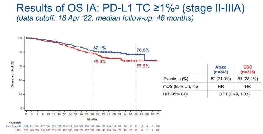 图1 IMpower 010:PD-L1≥1%的II-IIIA期患者OS、II-IIIA期患者OS及IB-IIIA期患者OS