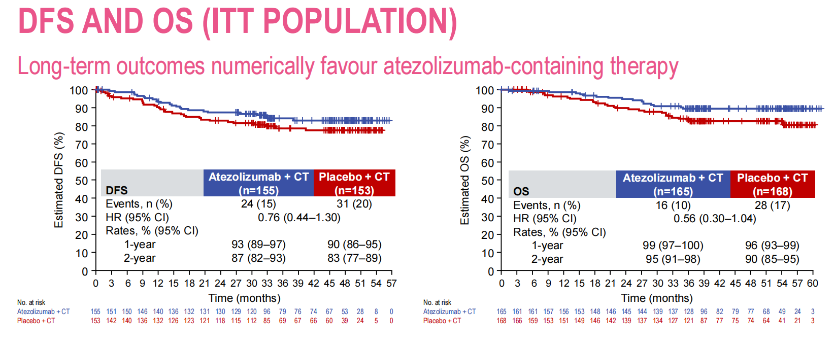 这项研究实际上在报道的时候也进行了小组分析,小组分析中并没有找出非常适合或者不适合免疫治疗的特殊人群。同时在DFS和OS方面,也与之前报道结果类似,安全性数据与既往的数据报道雷同。
