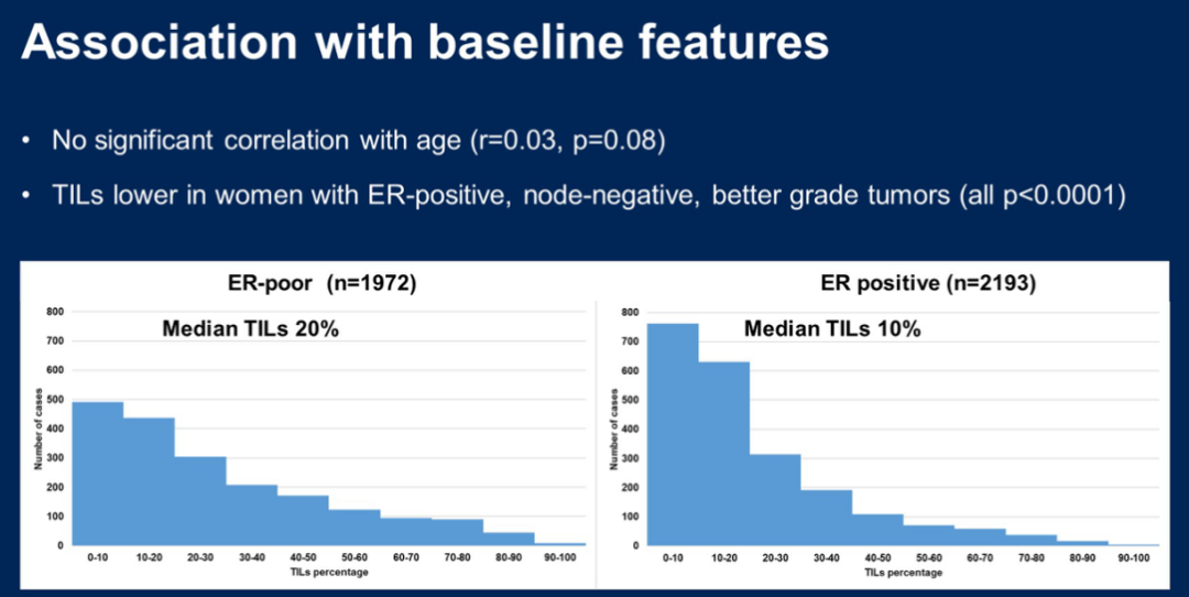 研究方法:入组5项随机对照试验(NSABP B-31、FinHER、HERA、Intergroup N9831、PACS-04)中4097名女性乳腺癌患者,并对其TILs进行量化。早期乳腺癌试验者协作组(EBCTCG)提供了所有试验中使用曲妥珠单抗治疗HER2阳性肿瘤女性患者的个体数据,对此进行荟萃分析,结果发现曲妥珠单抗治疗具有显著获益。依据国际指南对TILs进行评估,HERA试验使用数字TILs评分。主要终点是首次复发的时间。针对试验、治疗分配和淋巴结状态使用Cox回归分析进行调整,用于量化TILs的预后价值,标准分层对数秩检验用于评估曲妥珠单抗治疗的不同效果。