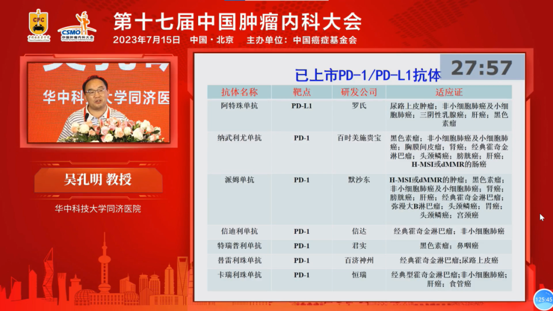 编者按:为了推动肿瘤内科学进一步发展,为肿瘤内科学研究交流提供优质平台,由中国癌症基金会主办的第十七届中国肿瘤内科大会于2023年7月15日在北京人卫酒店召开。本次大会以“精准治疗、全程管理”为主题,旨在提高我国肿瘤诊疗服务水平、推动国内常见肿瘤规范化诊疗和肿瘤精准治疗进程。本届大会以临床实践应用为导向,聚焦精准医学前沿资讯的学术会议风格,涵盖肺癌、消化道系统肿瘤、乳腺癌、淋巴瘤、泌尿肿瘤、头颈部肿瘤等多个病种,内容涉及肿瘤早筛早诊、精准诊断、规范化治疗等临床与转化研究热点。