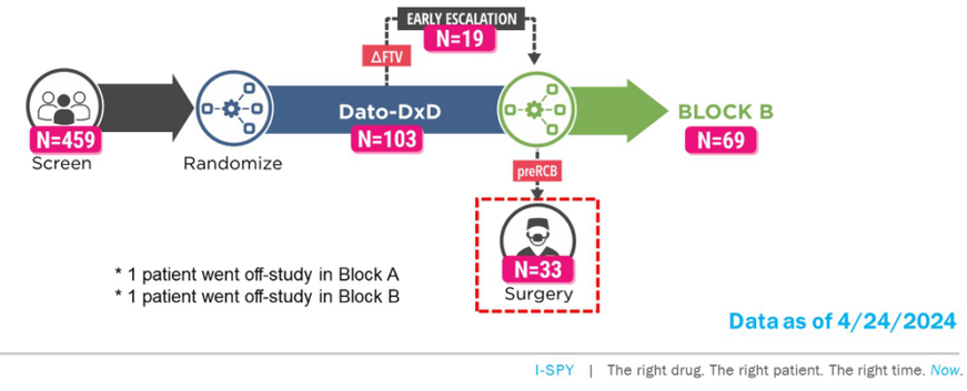 [1]Jane Lowe Meisel,et al.Rates of pathologic complete response(pCR)after neoadjuvant datopotamab deruxtecan(Dato):Results from the I-SPY2.2 trial.ASCO 2024.Abstract LBA509