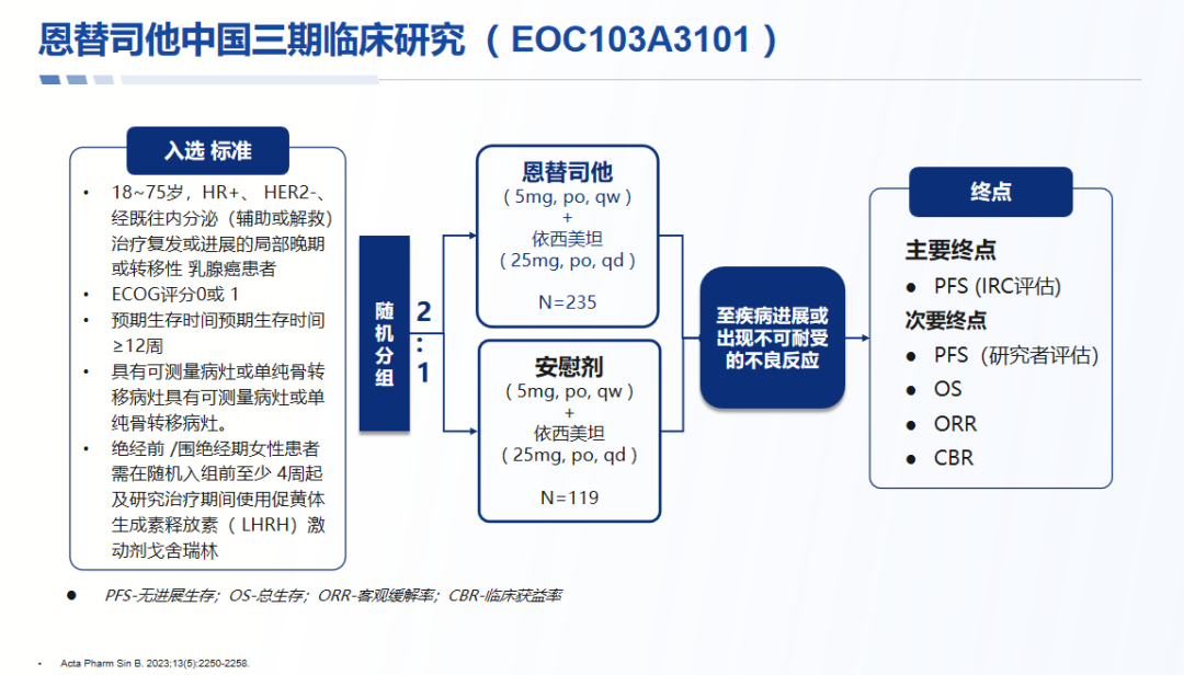 图3.恩替司他中国Ⅲ期临床研究(EOC103A3101)主要研究终点